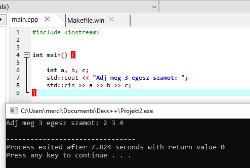 Több adatot egymás után is bekérhetsz egy sorban – a >>-t mindegy, hogy szóköz, tab, vagy Enter választja el
