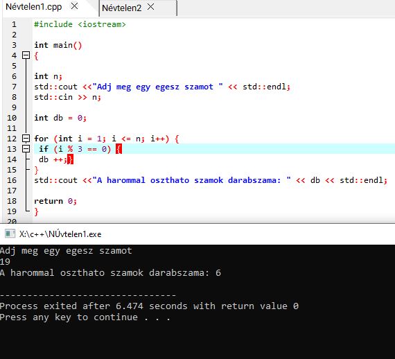 std::cin >> n; – beleteszi a megadott számot a dobozba. Beírtam, hogy 6, innentől az n = 6 lesz.