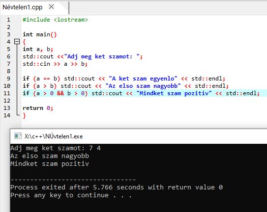 C++ feltételek