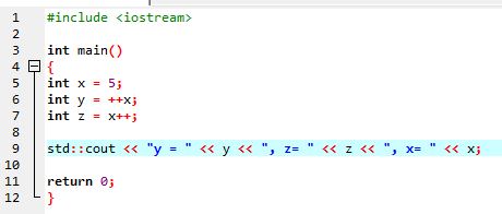y = x++ + 2; -> y = 7, x = 6