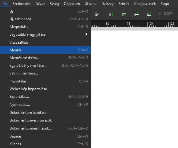 A menüsoron nagy valószínűséggel ezeket fogod látni: Fájl | Szerkesztés | Nézet | Réteg | Objektum | Útvonal | Szöveg | Szűrők | Kiterjesztések | Súgó