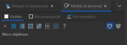 általában jobb oldalt dokkolva találod meg, fülekkel (pl. „Rétegek és objektumok”, „Kitöltés és körvonal”)