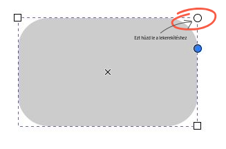 3. A téglalapot le kell kerekítenünk. Térj vissza a most már szürke téglalaphoz. Látod, hogy a téglalap csúcsain különböző fogantyúk vannak. Ragadd meg a kör alakú fogantyút és húzd le addig, amíg a fej lekerekítése nem lesz megfelelő.