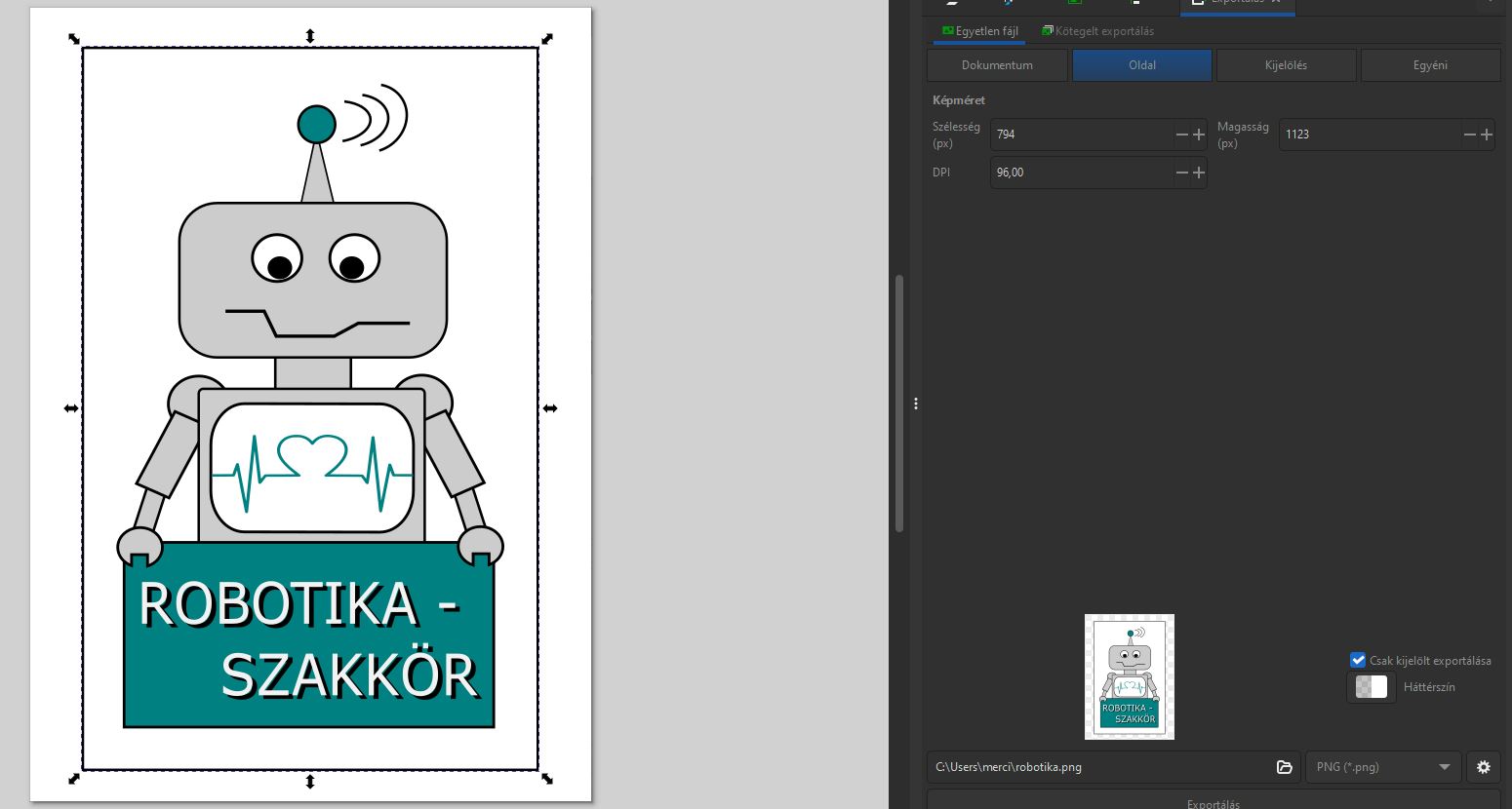 12. A kijelölt ábrát exportálja, vagy mentse robotika.png néven is! Ügyeljen arra, hogy az