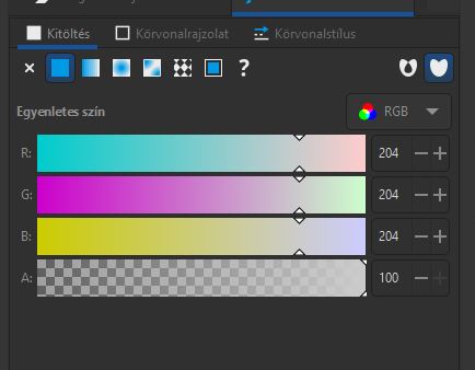 Az alsó színskálát most nem tudjuk használni, mert a szín pontosan meg lett adva.