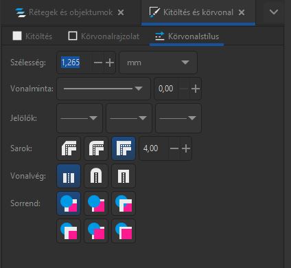 Körvonal: fekete (ha eltűnt, a Körvonalrajzolat fülön kapcsold vissza)