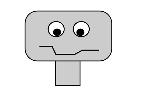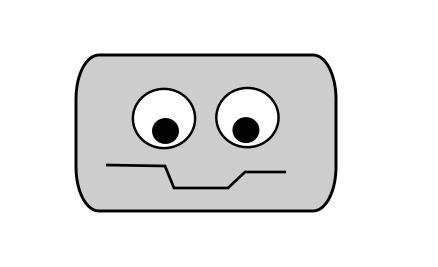 A mintán látszik, hogy a robotnak két szeme van: egy fehér szemgolyó fekete körvonallal, és benne egy kisebb, fekete kitöltésű pupilla.