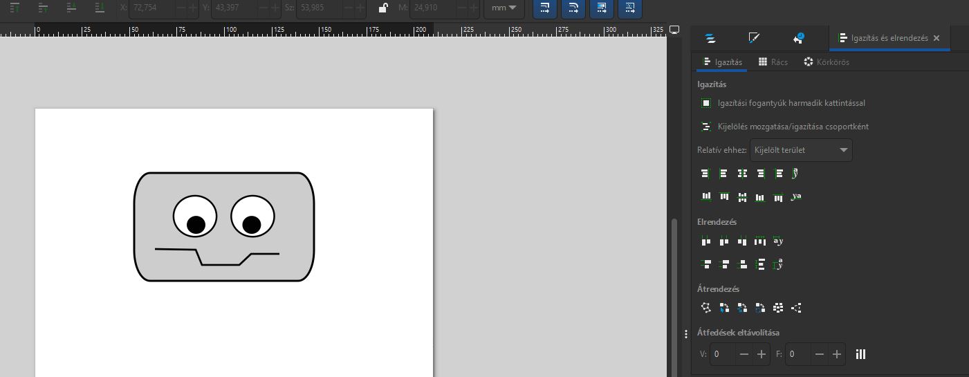 Ha már minden elem a helyén van, jelöld ki a robot összes részét (kijelöléssel, vagy húzz köré kijelölőkeretet), és csoportosítsd: