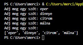 Most nézzünk egy nagyon hasznos példát: azt szeretnénk, hogy a felhasználó több szót adjon meg, és ezeket egy listában tároljuk.