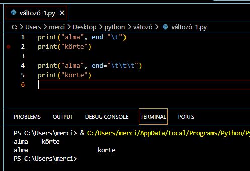 - az alá tartozó utasításokat beljebb kell írni. ezt általában egy tabulátorral oldjuk meg. A pythonban a behúzás nem dísz, hanem szabály. A feltételhez csak a behúzott sorok tartoznak. Ha nem húzzuk beljebb, nem tartozik a feltételhez, ezért a program minden esetben végrehajtja.